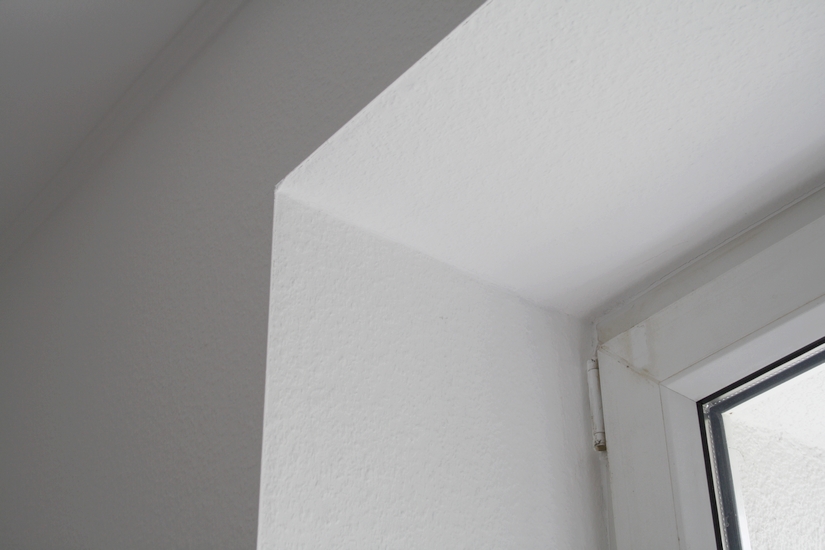 Für saubere Abschlüsse und zur Erhöhung der Strapazierfähigkeit wurden Eckschutzschienen aus weißem Kunststoff gesetzt und die Übergänge angespachtelt. Loser Putz wurde ausgebessert, Schimmel an Problemstellen beseitigt und grundiert. Neben weiß gestrichenen Decken wurde die Wohnung Großteils mit strapazierfähiger Raufasertapete tapeziert. Einzelwände wurden mit vom Kunden gestellten Tapeten auf vorher glatt gespachtelten Untergründen tapeziert. Abschließend wurden Türzargen- und Blätter, sowie Holzfensterrahmen frisch lackiert.